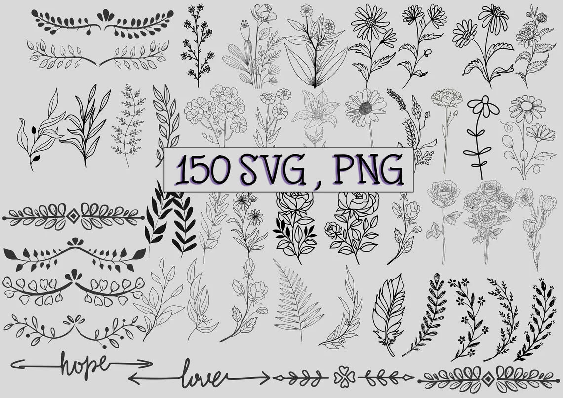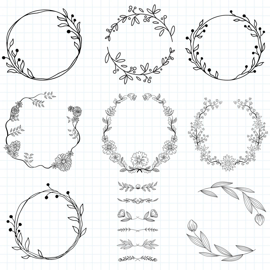 [CX330] 150 hand draw Border ,Bundle Flower, Flower Wreath Svg, Circle Border Svg,, Leaf Border Svg, Arrows Svg