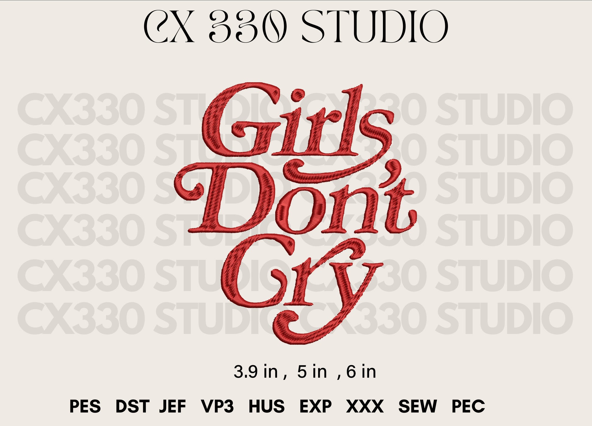 Looking for unique and stylish embroidery designs featuring the "Girl Don't Cry" typography font? Our collection is perfect for adding a touch of elegance and sentiment to your projects. Whether you're crafting for yourself or creating a unique gift, our designs are sure to impress.
