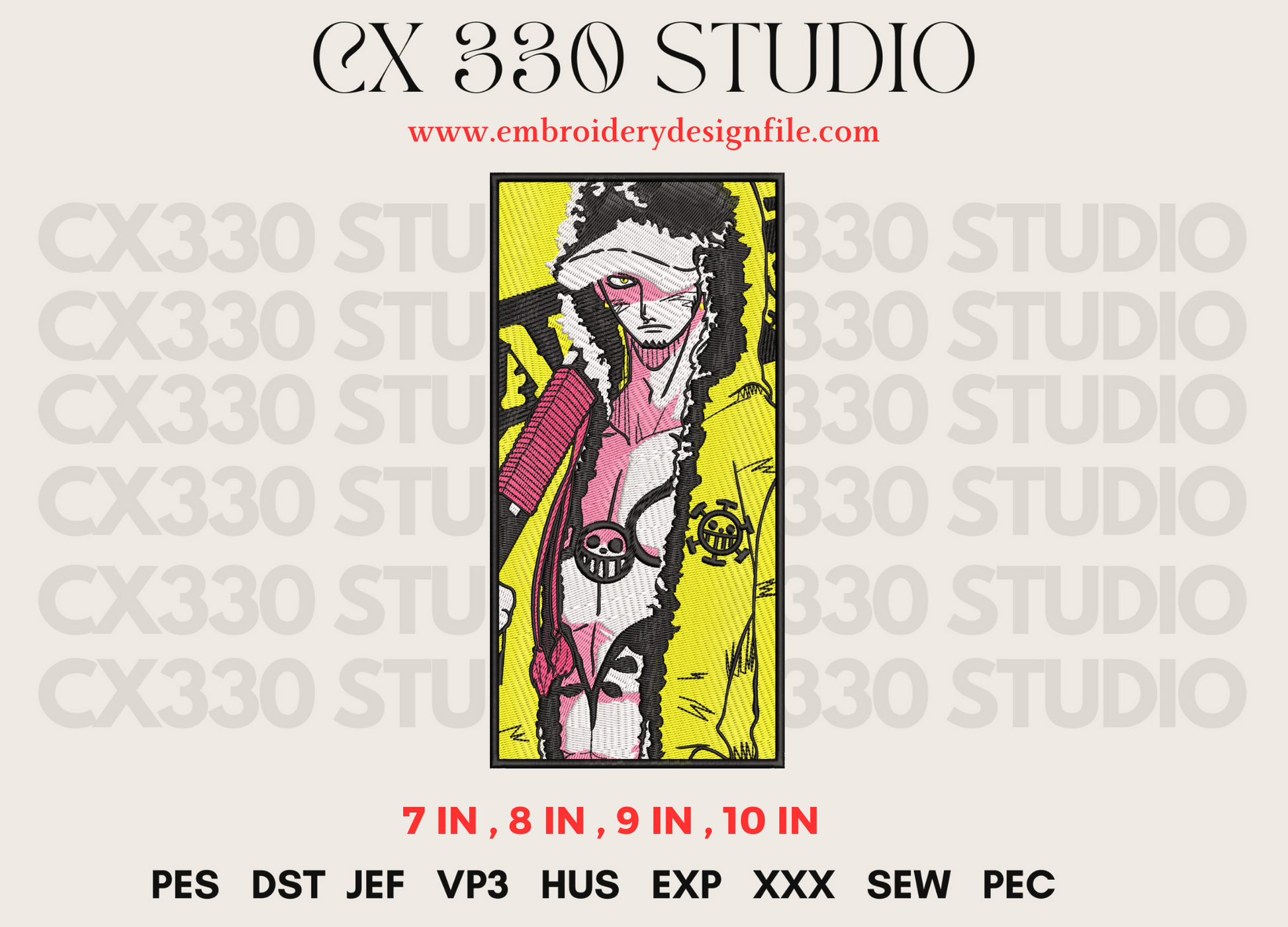 Trafalgar D. Water Law One Piece Embroidery machine Design file